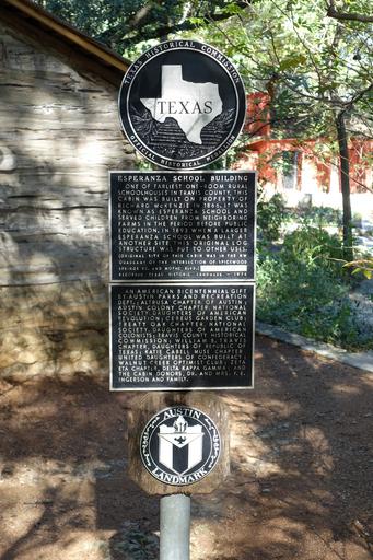 | Keywords: Esperanza School Building plaques - Zilker Botanical Garden - Austin, Texas - DSC08816.jpg en Zilker Botanical Garden - Austin Texas USA 2015-11-18 12 32 59 own Daderot other versions cc-zero Esperanza School Building Zilker Botanical Garden Historical markers in Austin Texas Recorded Texas Historic Landmarks plaques | ||||