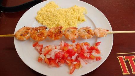 Keywords: skewer espetinho shrimp camarão farofa vinagrete joão pessoa joãopessoa paraíba brazil brasil Shrimp skewer Shrimp skewer