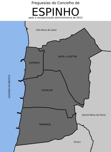 | Keywords: Espinho freguesias 2013.svg pt Freguesias do concelho de Espinho Fontes Diário da República Reorganização administrativa do território das freguesias Lei n º 11-A/2013 de 28 de janeiro Direcção-Geral do Território Carta Administrativa Oficial de Portugal CAOP versão 2013 Continente http //www dgterritorio pt/ficheiros/cadastro/caop/caop_download/caop_2013_0/caop2013cont_zip_2 en Civil parishes in the municipality of Espinho Portugal Sources Diário da República Administrative reorganization of the civil parishes' territory Law n 11-A/2013 from 28th January Direcção-Geral do Território Official Administrative Chart of Portugal CAOP version 2013 Mainland http //www dgterritorio pt/ficheiros/cadastro/caop/caop_download/caop_2013_0/caop2013cont_zip_2 2014-04-25 10 47 09 own Gazilion cc-zero Uploaded with UploadWizard Espinho SVG maps of freguesias in Portugal |