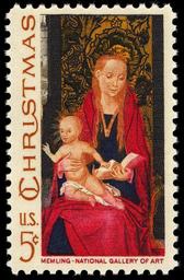 Keywords: Estampilla de los Estados Unidos 1967 000.jpg Hans Memling's Madonna and Child With Angels at the National Gallery of Art Washington D C - 1967 5-cent U S stamp es Estampilla de los Estados Unidos emitida en 1967 con imagen de la Virgen Maria y valor facial de 5 centavos 1967-11-06 U S Postal Service; National Postal Museum http //arago si edu/category_2034225 html 1967 Christmas Issue Bureau of Engraving and Printing PD-USGov 1967 stamps of the United States Commemorative stamps of the United States Christmas on stamps of the United States Paintings of Madonna and Child by Memling Madonna and Child on stamps 1967 stamps of the United States |