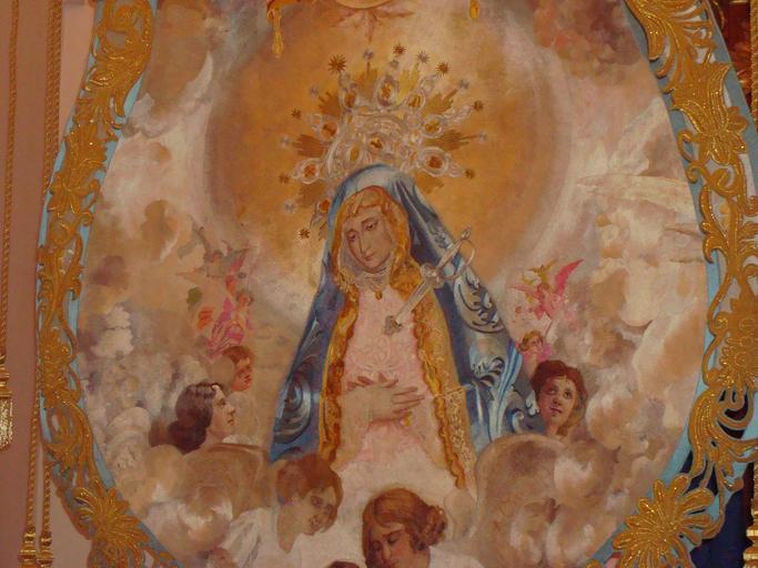 Keywords: Estandarte Dolorosa.JPG Estandarte de la Virgen de los Dolores patrona del Paso Azul Semana Santa de Lorca Own 2008-03-14 Awuachumele Holy Week in Lorca Religious standards in Spain