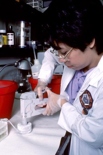 Keywords: Estrogen receptor assay.jpg An Asian female technician performing a breast pathology test on some frozen breast tissue She is standing and wearing a white laboratory coat She appears to be compressing breast tissue in a small laboratory dish and inspecting it This is one of the steps in an estrogen receptor assay Results suggest whether removal of ovaries or use of antiestrogen drugs are likely to be effective Topics/Categories People -- Adult People -- Health Professional Test or Procedure -- Lab Tests Type Color Photo Source National Cancer Institute Linda Bartlett Photographer 2027 1980 Reuse Restrictions None - This image is in the public domain and can be freely reused Please credit the source and/or author listed above Linda Bartlett Photographer PD-USGov-HHS-NIH Media from National Cancer Institute Visuals Online Images uploaded by Fæ Chemical tests |