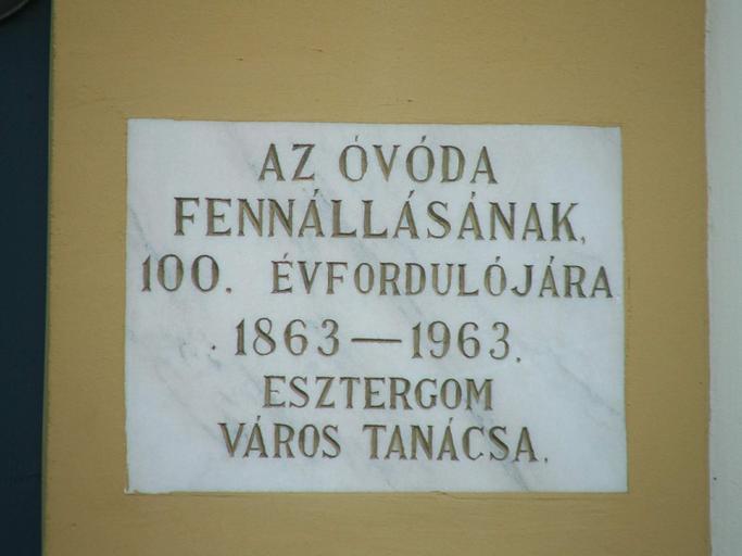 Keywords: Esztergom.Belvarosi.Ovoda.JPG hu Az óvoda fennállásának 100 évfordulóján állított tábla Own Villy Plaques in Esztergom Kindergarten in Komárom-Esztergom County
