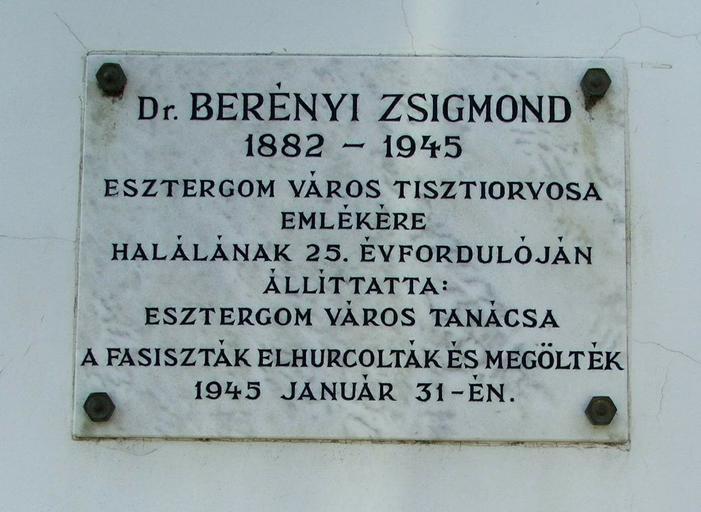 Keywords: Esztergom Berényi tábla.1.jpg hu Berényi Zsigmond emléktáblája Own Villy Plaques in Esztergom