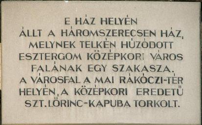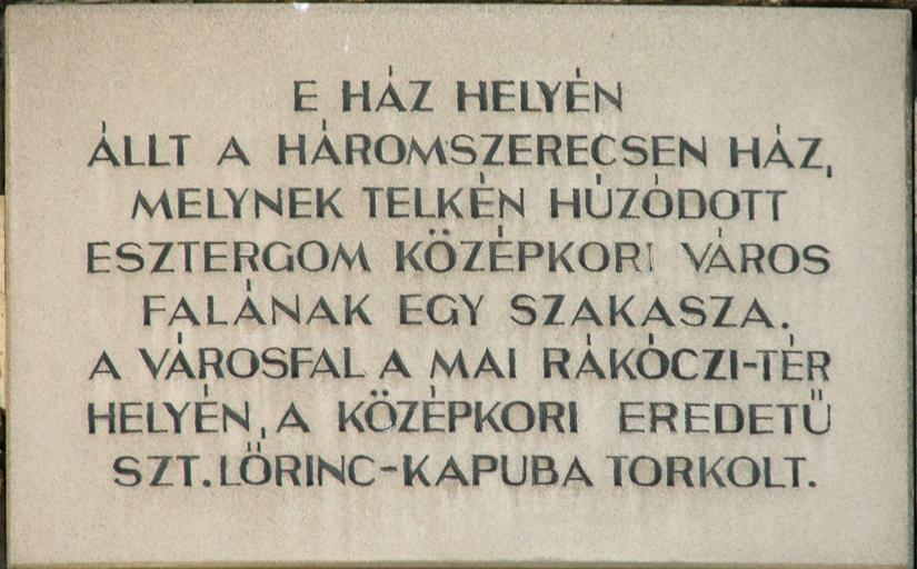 Keywords: Esztergom Lőrinc-kapu.JPG hu A Lőrinc kapu egykori helyét jelző tábla a Rákóczi téren Own Villy Plaques in Esztergom