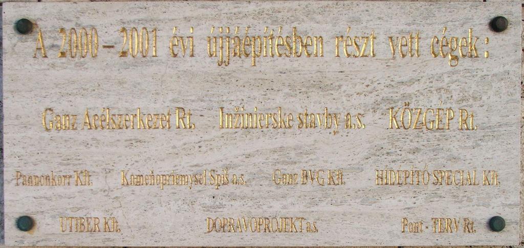 Keywords: Esztergom MV hid épitoi.JPG hu A Mária Valéria hidat építő cégek névsora own Villy 2009-11-13 Plaques in Esztergom