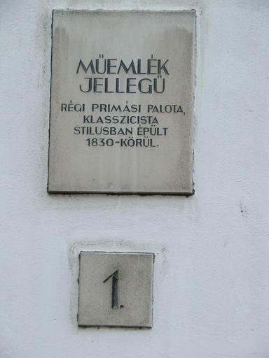 Keywords: Esztergom régi prímási palota.JPG hu A régi prímási palota épületén lévő emléktábla Own Villy Plaques in Esztergom Signs of cultural heritage monuments in Hungary House numbers in Hungary 1 house number