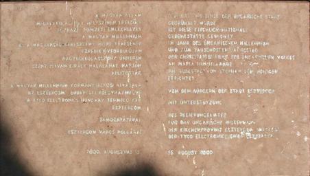 Keywords: Esztergom Szt. István vértanú-templom 1.jpg hu Szt István vértanú-templom emléktábla Own Villy date Plaques in Esztergom Bilingual plaques in Hungary