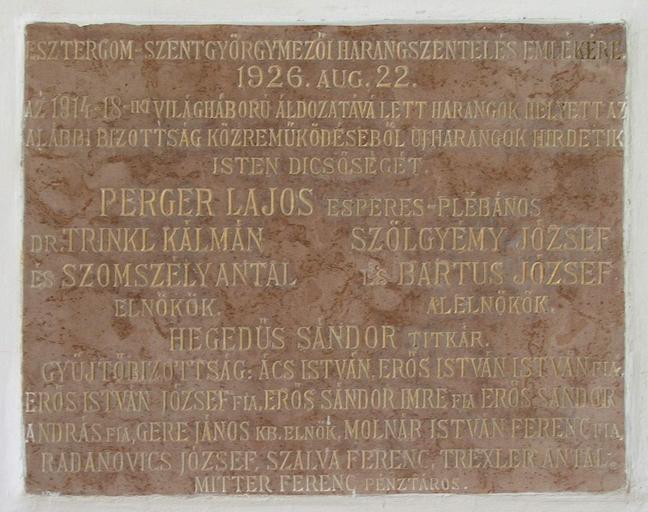 Keywords: Esztergom.Sztgymtemplom001.jpg hu Emléktábla a szentgyörgymezei templomon Own Villy Plaques in Esztergom Saint George Church Szentgyörgymező