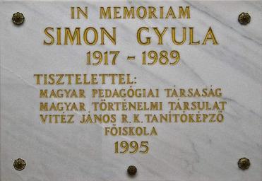 Keywords: Esztergom Vitéz János kar emléktábla 6.jpg hu Simon Gyula emléktáblája Own Villy Plaques in Esztergom Pázmány_Péter_Catholic_University_Vitéz_János_Faculty_of_Teaching