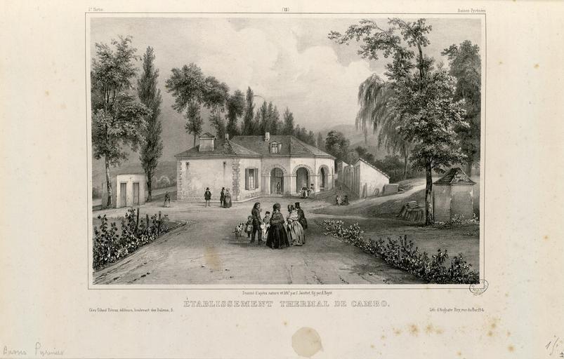 Keywords: Etablissement thermal de Cambo (Basses Pyrénées) - Fonds Ancely - B315556101 A JACOTTET 2 016.jpg Fait partie de la deuxième partie du recueil Souvenirs des Pyrénées Titre lithographié et 51 lithographies Sur la couverture l'adresse du lithographe est différente de celle de la page de titre rue du Bac 134 Les personnages qui animent les vues ont été dessinés par A Bayot Le lithographe de cette deuxième partie est Auguste Bry L'ouvrage de Jacottet est très rare quand il est complet des deux parties Vignette lithographiée au titre La Roche du Limaçon Route de Cauterets Ancely René 1876 - 1966 Possesseur fre public domain domaine public B315556101_A_JACOTTET_2_016 jpg image/jpeg 1 f de pl lithogr ; 42 cm Bry Auguste Lithographe Gihaut Jean Editeur Gihaut Michel-Ange 1800-1871 Editeur http //numerique bibliotheque toulouse fr/collect/general/index/assoc//ark /74899/B315556101_A_JACOTTET_2_016 dir/B315556101_A_JACOTTET_2_016 jpg Bibliothèque municipale de Toulouse A-JACOTTET 2-15 Creator Louis-Julien Jacottet http //catalogues toulouse fr/web2/tramp2 exe/do_keyword_search/log_in setting_key BMT1 servers 1home query p001097 vignette http //numerique bibliotheque toulouse fr/collect/general/index/assoc//ark /74899/B315556101_A_JACOTTET_2_016 dir/B315556101_A_JACOTTET_2_016_thumb jpeg between 1841 1842 Etablissement thermal de Cambo Basses Pyrénées B315556101_A_JACOTTET_2_016 lithography - print Women in art Trees in art Buildings in art Dogs in art Redingotes in art Cambo-les-Bains Dresses in art Hats in art Historical images of Pyrénées-Atlantiques Children in art National costumes in art Roads in art Men in art Houses in art Louis-Julien Jacottet Shawls |