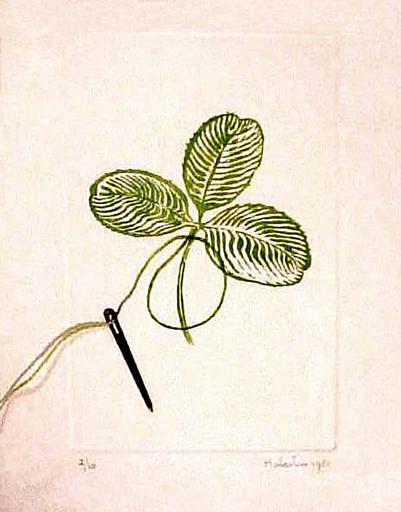 | Keywords: etching stitching drawing etching.plate etchingplate real.thread realthread hubertine-heijermans hubertineheijermans artist.printmaker artistprintmaker on.paper onpaper tiny.edition tinyedition printed.by.artist printedbyartist 1981 printed.by.hand printedbyhand press.bendini pressbendini The needle was also etched but was bitten by the nitric acid for a longer time, while the etching plate around it was covered with a layer of tar varnish. The real thread is an invention of the artist that nobody else had done yet. A clover of 4 leaves brings luck, no? En français; cette eau-forte a été exécutée sur une seule plaque et seulement un fil a été posé, en perçant la feuille du papier, formant le bout de la 4me feuille. Le fil sort et dépasse donc le bord du papier. L'aiguille était mordue très longtemps par l'acide nitrique, tandis que la plaque était couverte et protégée par une couche de bitume ou goudron. The needle was also etched but was bitten by the nitric acid for a longer time, while the etching plate around it was covered with a layer of tar varnish. The real thread is an invention of the artist that nobody else had done yet. A clover of 4 leaves brings luck, no? En français; cette eau-forte a été exécutée sur une seule plaque et seulement un fil a été posé, en perçant la feuille du papier, formant le bout de la 4me feuille. Le fil sort et dépasse donc le bord du papier. L'aiguille était mordue très longtemps par l'acide nitrique, tandis que la plaque était couverte et protégée par une couche de bitume ou goudron. |
