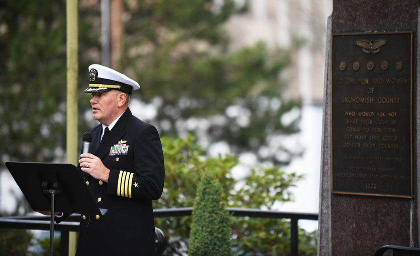 | Keywords: Eternal Flame Veterans Day Ceremony 161111-N-WX604-192.jpg en 161111-N-WX604-192 EVERETT Wash Nov 11 2016 Capt Mark A Lakamp Naval Station Everett's commanding officer speaks during the annual Snohomish County Courthouse Eternal Flame Memorial Veteran ™s Day ceremony in Everett The ceremony began in 1972 when the Evergreen Chapter American Gold Star Mothers Inc dedicated the eternal flame to the veterans of Snohomish County U S Navy photo by Petty Officer 3rd Class Joseph Montemarano/Released <br>Unit Navy Public Affairs Support Element Det Northwest 2016-11-11 Petty Officer 3rd Class Joseph E Montemarano https //www dvidshub net/image/2984456/eternal-flame-veterans-day-ceremony 161111-N-WX604-192 2016-11-12 18 16 EVERETT WA US PD-USGov-Military-Navy Naval Station Everett Veterans Day 2016 Images from DoD uploaded by Fæ |