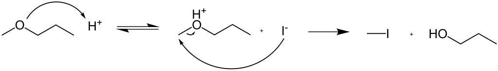 Keywords: Ether-cleavage-sn2.svg en Acid catalysed cleavage of an ether in an Sn2 reaction own Wampenseppl 2011-09-01 created with Inkscape validSVG Cc-zero Chemical reactions