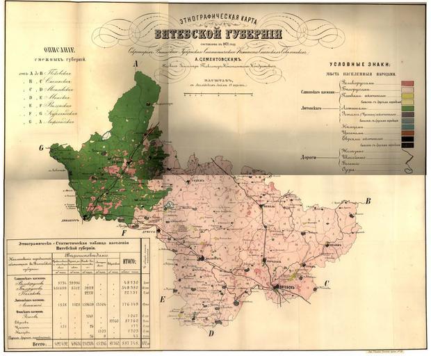 Keywords: Ethnic map of Vitebsk Governorate - by Sementovski - 1871 AD.jpg en Ethnic map of Vitebsk Governorate Russian empire by Alexander Sementovski-Kurylo 1821-1893 Created in 1871 AD ru Этног афическая ка та Витебской губе нии составленная Александ ом Сементовским в 1871 г Опубликована в его книге Этног афический обзо Витебской губе нии 1872 г be Этнаг афічная ка та Віцебскай губе ні складзеная Аляксанд ам Семянтоўскім у 1871 г Размешчана ў яго кнізе Этног афический обзо Витебской губе нии 1872 г a book Александ Сементовский Этног афический обзо Витебской губе нии 1872 AD ; http //dlib rsl ru/viewer/01003083731 page 1 view list Alexander Sementovski-Kurylo 1821-1893 1871 PD-old-100 Aleksandr Sementovskiy Maps of Vitebsk Governorate Old maps of Belarus |