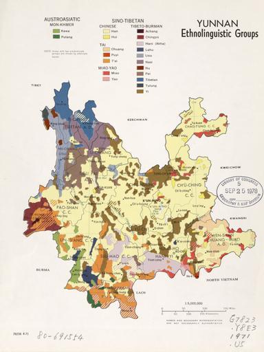 Keywords: Ethnolinguistic groups in Yunnan Province (1971).jpg Yunnan Province LOC-map g7823y ct002846 Central Intelligence Agency 1971 PD-USGov-CIA PD-USGov Uploaded with UploadWizard Linguistic maps of China