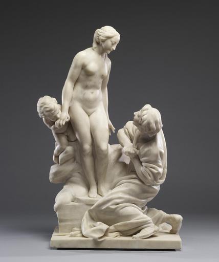 | Keywords: Etienne-Maurice Falconet - Pygmalion and Galatea - Walters 27387 - View A.jpg  This statue is very likely the one exhibited by the artist at the Salon of 1763 The subject is taken from the Roman poet Ovid's tale of Pygmalion Pygmalion is depicted in rapturous amazement at the feet of his love object a nude sculpture just at the moment when it is given life by Venus the goddess of love It is one of several celebrated works that established Falconet as one of the most influential sculptors of the second half of the 18th century Falconet was supported by Louis XV's mistress Mme de Pompadour through whose influence he was put in charge of sculpture at the Royal Porcelain Manufactory at Sèvres A version of this sculpture was supplied by the artist as a model for reproduction by the manufacturer in white biscuit porcelain Although this marble statue shares the same spirit as the painter Boucher's lighthearted and often erotic works Falconet also created ambitious sculptures noted for their sober Classicism the most famous example being his heroic equestrian portrait of Peter the Great in St Petersburg 1763 marble cm 58 42 accession number 27 387 17579 Gaston Le Breton Ambatielos date and mode of acquisition unknown Arnold Seligmann Rey Co date and mode of acquisition unknown Henry Walters city Baltimore Walters Art Museum Henry Walters Acquired by Henry Walters 1924 Art about Art Painting and Sculpture in Competition Wettstreit der Künste Malerei und Skulptur von Dürer bis Daumier Haus der Kunst Munich; Wallraf-Richartz-Museum Köln 2002 place of origin France Walters Art Museum license Étienne Maurice Falconet Media contributed by the Walters Art Museum needs category review Sculptures in the Walters Art Museum |