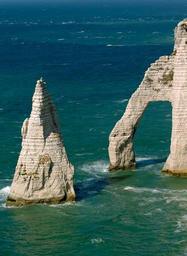 Keywords: etretat normandy sea water france stone arch landscape roche creuse cliffs nature erosion beach tourism mecca picturesque mineral limestone white blue wave tourist handle
