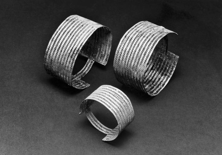 Keywords: Etruscan - Group of Bracelets with Open Rows of Wire - Walters 57393, 57394, 57396.jpg Composed of strips of openwork filigree; two smooth wires edged with twisted wires alternate with a waved smooth wire At the ends of the bracelets are strips composed of a waved smooth wire between twisted wires The clasps of the bracelets consist of two waved smooth wires between smooth and twisted wires with a hook and eye for attachment century 7 BC gold 57 393 cm 3 42 6 42 6 25 ; 57 394 cm 3 3 6 1 6 4 ; 57 396 cm 2 4 4 1 3 9 accession number 57 393 57 394 57 396 77420 Joseph Brummer New York Yugoslavian treasure Henry Walters city Baltimore Walters Art Museum Henry Walters Acquired by Henry Walters 1927 place of origin Germany Walters Art Museum license Etruscan art in the Walters Art Museum Jewellery in the Walters Art Museum Media contributed by the Walters Art Museum needs category review |