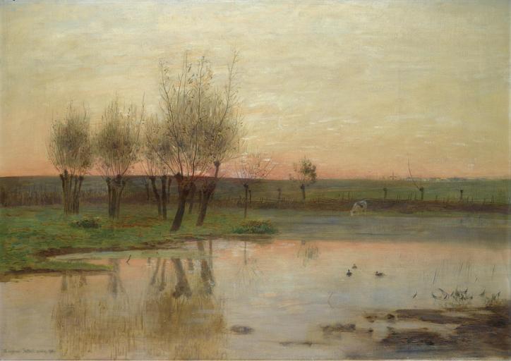 | Keywords: Eugen Jettel-The Watermeadow.jpg de Stehendes Gewässer mit Weiden Öl auf Leinwand 82 x 115 5 cm Signiert und datiert Eugène Jettel pinx 90 en The Watermeadow Oil on canvas 82 x 115 5 cm Signed and dated Eugène Jettel pinx 90 1890 http //www sothebys com Sotheby's Creator Eugen Jettel other versions Custom license marker 2015 11 10 PD-old-100 Eugen Jettel 1890 paintings Images from Sotheby's Uploaded with UploadWizard | ||||