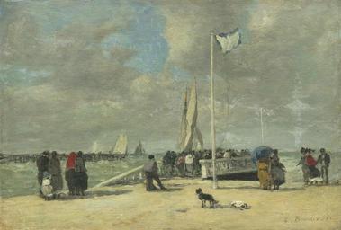 | Keywords: Eugène Boudin, On the Jetty, 1869-70.jpg en Eugène Boudin On the Jetty 1869-70 This on-the-spot study although not specifically made for Jetty and Wharf in the previous slide in fact painted years later nonetheless illustrates the relation between an oil sketch and a studio-finished picture meant for exhibition at the Salon Eugène Boudin began to paint tourist scenes in 1862; the next year when this painting was made a new rail line opened from Paris to Trouville-Deauville making travel to these resorts much easier Beach vacationers were unconventional subjects for an artist at that time Seascapes if they had figures were more typically staffed by fishermen or peasant washerwomen Boudin's tourists by contrast were as modern as the black smoke rising from the arriving steamer They had leisure time and money to spend and were the patrons as well as the subjects of his art Though crowded Boudin's beach scenes usually lack narrative or anecdote He was characterizing a class of people not individuals and therefore painted their postures and fashions not their faces Their very anonymity added to his pictures' modern feel Boudin's modern subjects and even more the immediacy of his handling of changing light and sky were a strong influence on younger painters On the Jetty c 1869/1870 oil on wood Ailsa Mellon Bruce Collection 1970 17 13 http //www nga gov/content/ngaweb/features/slideshows/eugene-boudin-at-the-national-gallery-of-art html Creator Eugène Boudin 1869/70 PD-Old Paintings by Eugène Boudin |