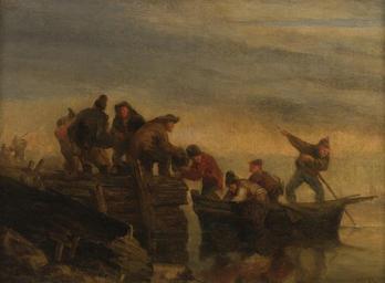 | Keywords: Eugène Boudin - Pècheurs au bord de l'Eau.jpg Artwork Creator Eugène Boudin ca 1853-1856 oil canvas cm 27 9 36 5 object history Provenance Sale Hôtel Drouot Paris June 21 1961 lot 40<br/>Private collection Louisiana<br/>Sale Neal Auction Company New Orleans August 4 2001 lot 210 Signed Boudin lower right accession number http //www sothebys com/de/catalogues/ecatalogue html/2011/impressionist-modern-art-including-russian-art-n08777 /r /de/ecat fhtml N08777 html+r m /de/ecat lot N08777 html/14/ Sotheby's PD-old-100 Normandy by Eugène Boudin 1850s paintings Images from Sotheby's |