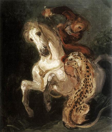 Keywords: Eugène Delacroix - Jaguar Attacking a Horseman - WGA6232.jpg ca 1855 Oil on canvas size cm 23 5 28 5 Institution Národní galerie v Praze object history credit line accession number WGA link 6232 http //www wga hu/art/d/delacroi/5/516delac jpg http //www wga hu/html/d/delacroi/5/516delac html PD-old-100 painting other French 1801-1850 Orientalist paintings by Eugène Delacroix Paintings in the Národní galerie v Praze WGA form painting WGA type other WGA School French WGA time period 1801-1850 1850s paintings from France |