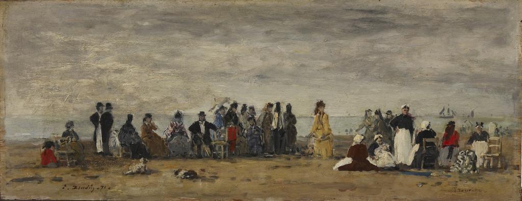 Keywords: Eugène Louis Boudin - Trouville - Walters 37840.jpg From the early 1860s Boudin depicted elegant tourists on the Normandy coast Trouville had recently been established as a fashionable summer resort with its own casino and luxury hotels Boudin's attitude toward his subjects was not necessarily sympathetic and in 1867 he described such scenes of upper-class enjoyment as a disgusting masquerade and his subjects as ghastly parasites This particular scene may have been painted in September 1871 after he had returned from Antwerp where he had sought refuge during the Franco-Prussian War of 1870-71 1871 oil on panel cm 18 46 4 accession number 37 840 37203 provenance Cyrus J Lawrence New York Sale American Art Association Mendelssohn Hall New York January 21-22 1910 no 55 Henry Walters city Baltimore under the alias of Henry Chester Walters Art Museum Henry Walters Acquired by Henry Walters 1910 Before Monet Landscape Painting in France and Impressionist Masters Highlights from The Walters Collection The Walters Art Gallery Baltimore 1998 The Road to Impressionism Landscapes from Corot to Manet The Walters Art Museum Baltimore 2004-2005 The Road to Impressionism Barbizon Landscapes from the Walters Art Museum The Dixon Gallery and Gardens Memphis; The Frick Art Historical Center Pittsburgh 2008-2009 place of origin France place depicted Beach of Trouville Walters Art Museum license 2D Paintings of Trouville-sur-Mer Eugène Boudin Eugène Boudin - Trouville 1871 French paintings in the Walters Art Museum Group paintings People at the beach in art 1871 paintings 1870s paintings from France |