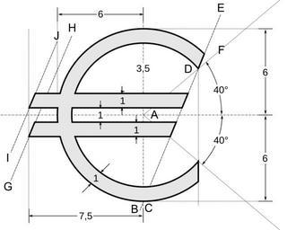 | Keywords: Euro Construction.svg Assessments 5 2007 1 1 1 Euro Das Diagramm zeigt wie das Euro-Symbol gemäß der offiziellen Dokumentation zu zeichnen ist Es wurde explizit für Wikipedia erstellt und ist gemeinfrei ADF und BCDE schneiden sich in D BCDE GH und IJ sind parallel BCDE schneidet die Grundlinie in C Este diagrama ilustra como se diseña el símbolo del euro basado en la documentación oficial y preparado específicamente para la Wikipedia lanzado en el domínio público ADF y BCDE se intersectan en D BCDE GH y IJ son paralelas BCDE intersecta la linea central que pasa por C This diagram illustrates how to draw a euro symbol based on official documentation and has been prepared specifically for Wikipedia and released to the public domain ADF and BCDE intersect at D BCDE GH and IJ are parallel BCDE intersects centerline at C Diagramme illustrant la construction d'un symbole euro et basé sur la documentation officielle Ce diagramme a été préparé spécifiquement pour Wikipédia et appartient au domaine public ADF et BCDE se coupent en D BCDE GH et IJ sont parallèles BCDE coupe en C la verticale passant par A Questo diagramma illustra la costruzione del simbolo dell'euro; è basato sulla documentazione ufficiale ed è stato preparato specificamente per Wikipedia e rilasciato come pubblico dominio ADF e BCDE si intersecano in D BCDE GH e IJ sono parallele BCDE interseca in C la verticale passante per A ユーロのシン ルの書き方図解 公式文書にもとづき ウィキペディアのために 成されPDでリリースされた ADFとBCDEは点Dで交わる BCDE GH IJは平行 BCDEは中心線と点Cで交わる Dit diagram illustreert hoe een euro symbool getekend kan worden gebaseerd op officiële documentatie en is specifiek voor Wikipedia gemaakt en publiekelijk beschikbaar gesteld ADF en BCDE snijden bij D BCDE GH en IJ zijn paralel BCDE snijdt de middelijn bij C Diagram ilustrujące prawidłowy sposób kreślenia znaku euro Diagram został opracowany w celu umieszczenia na Wikipedii i został przekazany przez autora do domeny publicznej Odcinki ADF i BCDE przecinają się w punkcie D Odcinki BCDE GH i IJ są względem siebie równoległe Odcinek BCDE przecina pionową prostą przechodzącą przez środek symbolu w punkcie C Diagrama ilustrando como se desenha o símbolo do euro baseado em documentação oficial e preparado especificamente para a Wikipédia lançado no domínio público ADF e BCDE intersectam-se em D BCDE GH e IJ são paralelas BCDE intersecta a linha central que passa em C Изоб ажение показывает как п авильно согласно официальной спецификации исовать символ Ев о Изоб ажение специально подготовлено для Википедии и п ава на него пе еданы в общественное достояние ADF и BCDE пе есекаются в D BCDE GH и IJ па аллельны BCDE пе есекает линию цент а в C inkscape Own 19 33 30 August 2006 UTC Erina References The official diagrams of the euro symbol are copyrighted and downloadable from the official European Commission site and include http //europa eu int/comm/economy_finance/euro/notes_and_coins/download/constr_en wmf constr_en wmf Windows Metafile WMF with constructions obsolete link http //europa eu int/comm/economy_finance/euro/notes_and_coins/download/euro_en wmf euro_en wmf Windows Metafile WMF without constructions obsolete link http //europa eu int/comm/economy_finance/euro/notes_and_coins/download/constr_en tif constr_en tif TIFF with constructions obsolete link http //europa eu int/comm/economy_finance/euro/notes_and_coins/download/euro_en tif euro_en tif TIFF without constructions obsolete link http //ec europa eu/economy_finance/images/image10483 jpg JPEG with constructions http //ec europa eu/economy_finance/images/image10484 jpg JPEG without constructions The official diagrams are provided in industry standard TIFF and WMF formats and are meant to be imported into a graphics editing program such as Adobe Illustrator or Photoshop The Wikipedia version was created with Adobe Illustrator and rendered in Portable Network Graphics PNG format It bases the guidelines for construction of the symbol on the key data provided for the official symbol but it was prepared from scratch and does not duplicate the official diagram and it is released to the public domain A very similar color version of this diagram is available at en Image EuroConstLargeColor png showing the official euro symbol colors It's prettier to look at but correspondingly more difficult to read Editing Changed the decimal separator to comma International System used in Europe --F l a n k e r 19 13 7 January 2007 UTC Modified the borders of the symbol and trasformed the arrows --F l a n k e r 22 13 10 January 2007 UTC Added the letters --F l a n k e r 22 24 10 January 2007 UTC Construction diagrams of the Euro symbol Featured diagrams Featured pictures on Wikimedia Commons - vector |