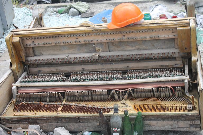 | Keywords: Europiano damaged.JPG  en Piano damaged after Euromaidan uk Піаніно пошкоджене внаслідок боїв на вулиці Інститутській Київ у лютому 2014  а пе едньому плані - пляшки підготовлені для коктейлю  олотова на піаніно - каска бійця самообо они Єв омайдану own A1 Euromaidan in Kiev unidentified month Europiano Cc-zero  |