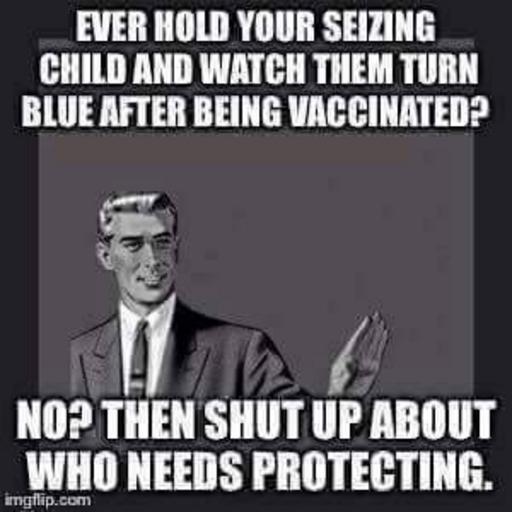 Keywords: anti vaccine vaccination vax disease health poison population control needle syringe Ever hold your seizing child and watch them turn blue after being vaccinated? No Then shut up about who needs protecting. Anti Vaccination meme collected by A.J. Wilson of iPressThis at FlatEarth.Online, made by others. Ever hold your seizing child and watch them turn blue after being vaccinated? No Then shut up about who needs protecting. Anti Vaccination meme collected by A.J. Wilson of iPressThis at FlatEarth.Online, made by others. |