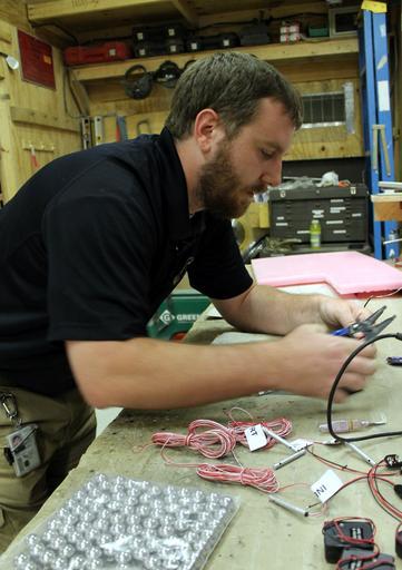 | Keywords: Everything but the ‘BOOM’ 130820-D-ZQ898-765.jpg  en Combined Joint Task Force Paladin fabricator Trace Yates splices wires for an improvised explosive device pressure plate trigger training aid at the CJTF Paladin Fabrication Shop on Bagram Air Field Afghanistan Aug 20 The ball bearings and inert blasting caps are also used to replicate various IED devices found on the battlefield The fabrication shop has produced more than 17 000 training aids for use by warfighters throughout Afghanistan since 2009 Photo by Ed Drohan Combined Joint Task Force Paladin Public Affairs 2013-08-20 Ed Drohan https //www dvidshub net/image/1000519 130820-D-ZQ898-765 2013-08-22 01 59 BAGRAM AIR FIELD AF PD-USGov Bagram Air Base Combined Joint Task Force Paladin Images from DoD uploaded by Fæ |