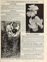 | Keywords: Everything for the garden (15770922543).jpg  Fif ffim PETER KHEMBERSOM <br> CO op HEW Â¥OM <br> 89 <br> COREOPSIS <br> Harvest Moon One of the finest hardy garden plants grown forming large clumps <br> 2 to 3 feet high and increasing in beauty luxuriance and floriferousness each year though <br> it flowers the first season from seed sown early It is an improved variety of the lanceolata <br> grandijlora type producing immense long-stemmed rich yellow flowers shaded with <br> orange flowering in profusion for a long period during the summer ; unequalled for <br> cutting ; grows anywhere Pkt 10c <br> El Dorado The long-lasting flowers are simply perfect measuring 3 inches and over in di- <br> ameter and are borne on stalks IS to 18 inches in length Color brilliant golden-yellow <br> This variety although a hardy biennial will flower the same season from seed sown early; <br> compact bushy plants ” about 2 feet high ” blooming abundantly during the summer <br> and fall Pkt 10c <br> COWSLIP <br> This beautiful spring-flowering dwarf hardy perennial primula veris bears clusters of <br> fragrant flowers of various colors as yellow-brown edged yellow etc They are particularly <br> pretty when grown in good sized colonies in partially shaded situations naturalized or in <br> shrubbery or herbaceous borders etc; height 6 inches Pkt 10c <br> PEKSIAN CYCLAMEN <br> Most beautiful winter and spring flowering plants for the window and greenhouse Not <br> only are the flowers of striking beauty but the foliage is also highly ornamental <br> Henderson's Giant Persian A superior strain with flowers of largest size and perfect form <br> displayed well above the handsome foliage; the colors include crimson rose-pink white ' <br> dark blood-red spotted eyed etc Mixed Colors Pkt 25c <br> Double Large-flowering The flowers have usually 8 to 10 petals often 12 to IS which <br> are more spreading than in single varieties There is the same range of colors crimson <br> pink white spotted etc Mixed Colors Pkt 25c <br> Butterfly Papilio or Victoria Cyclamen Very large flowers with fringed and fluted <br> petals the <br> edges being <br> distinguished <br> b y coloring <br> differing <br> from that of <br> the body of <br> the flower as <br> white with <br> red or purple <br> edge rose <br> with scarlet <br> edge crimson <br> with garnet <br> or violet <br> edge etc The <br> color of the <br> eye or base <br> of the flower <br> always corre- <br> sponds with <br> the marginal <br> color <br> Pkt 25c <br> NEW CYCLAMEN Mrs Bucbtone <br> NEW CYCLAMENS <br> Mrs Buckstone This new variety produces the largest flowers of all Cyclamens <br> averaging 2 4 inches and if well grown 3 inches across The petals are beautifully <br> crimped the coloring is a lovely tint of salmon Even though the flowers are so <br> large they are very freely produced and the plants are good growers The largest <br> and most beautiful of all Cyclamens Received an Award of Merit from the <br> R H S See cut Pkt 50c <br> Salmon King Immense perfectly formed flowers of a beautiful clear pink with a <br> lustre of salmon very free bloomer Received an Award of Merit from the <br> R H S Pkt 50c <br> Pink Pearl A new giant-flowering variety the most prolific bloomer of all Color <br> an exquisite shade of soft salmon Especially beautiful under artificial light Pkt 50c <br> White Swan A pure snow-white giant-flowering variety very profuse The blos- <br> soms are borne on exceptionally long stiff stems Pkt 50c <br> Vulcan A grand giant-flowering variety of deepest blood-red 50c <br> CYPRESS VINE AND CARDINAL CLIMBER <br> These beautiful twining annual climbers are not as much grown as they deserve <br> Seed started in pots early in the house or hot bed and the seedlings set out in the <br> garden after danger from frost will make plants 20 feet high and be completely covered <br> for 3 months or more with beautiful star-shaped tubular flowers borne in clusters <br> that contrast effectively against the feathery Fern-like bright green foliage Sown in <br> the open ground they will of course commence flowering later In the latter event the <br> hard shelled seeds should be soaked in hot water <br> White Pkt Sc Rose Pkt 5c <br> Scarlet 5c Mixed Colors 5c <br> Scarlet Queen or Cardinal Climber This new hybrid Cypress Vine is one of the <br> most beautiful annual climbers that we know of In a warm sunny location in good <br> soil it grows about 20 feet high and is densely clothed with miniature Palm-like <br> deeply serrated rich green leaves and literally bespangled with dazzling scarlet <br> tubular flowers 1 'i inches across See cut Pkt 25c <br> I do not think you can be too extravagant in your praises of the Cardinal Climber <br> for it is by all odds the best thing in a decorative annual climber I have ever seen <br> T S HASTURG Stamford Tex <br> DOLICHOS OR HYACINTH BEAN <br> Annual climbers of rapid growth 10 feet high with Wistaria-like clusters of <br> flowers followed by bronzy-purple seed pods <br> Japanese Giant White Long spikes of clear white flowers Pkt 10c <br> Japanese Giant Crimson Blush deepening with age to dark red 10c <br> Take it out in the Garden <br> it answers <br> questions <br> Henderson's Garden Guide and Kecord Free <br> with orders of 1 00 or over when <br> asked for See 2d page cover 43874881 149634 78295 Page 89 Text http //www biodiversitylibrary org/page/43874881 c1915 10 5962/bhl title 78295 Henry G Gilbert Nursery and Seed Trade Catalog Collection ; Peter Henderson Co NameFound Coreopsis NameConfirmed Coreopsis L EOLID 38349 NameFound Dolichos NameConfirmed Dolichos EOLID 28202 NameBankID 277075 NameFound Papilio NameConfirmed Papilio EOLID 10921043 NameBankID 2631142 Biodiversity Heritage Library Everything for the garden 1915 Garden Stories Books Bulbs Plants Catalogs Equipment and supplies Flowers Gardening Lawn mowers Seeds U S Department of Agriculture National Agricultural Library bhl page 43874881 dc 