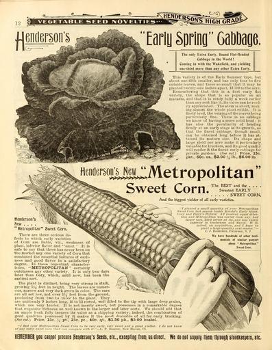 | Keywords: Everything for the garden (16024773344).jpg  12 <br> I <br> VEGETABLE SEED IMOVELTIES <br> ii enders ons <br> Early Spring Gabbage <br> The only Extra Early Round Flat-Headed <br> Cabbage in the World <br> Coming in with the Wakefield and yielding <br> one-third more than any other Extra Early <br> This variety is of the Early Summer type but <br> about one-fifth smaller and has only four to five <br> outside leaves and these so small that it may be <br> planted twenty-one inches apart 13 500 to the acre <br> Eemembering that tiiis is a first early flat <br> variety the shape that is so popular on all <br> markets and that it is ready fully a week earlier <br> than any sort like it its value can be reiid- <br> ily appreciated The stem is short mak- <br> ing almost the whole filant edilile It is <br> finely bred the veining of the loaves l eing <br> particularly fine There is no cabbage <br> we know of having a more solid head ; it <br> has also the peculiarity of heading <br> firmly at an early stage in its growth so <br> that the finest cabbage though small <br> can be obtained long before it has at- <br> tained its mature size Its shape and <br> laige yield per acre make it particularly <br> valuable for truckers and its good quality <br> will render it the finest early cahl age for <br> private gardens See cut Price 15c <br> pkt 60c oz 2 00 lb 6 00 lb <br> llMetropolitan <br> Sweet Corn <br> The BEST and the <br> Sweetest EARLY <br> SWEET CORN <br> And the biggest yielder of all early varieties <br> / flnitii a smnll qii iiitity of yniir MetropoHtitn <br> Swift III Inyt St ison 1 1 \Hlf Kpiiilel's Eiirly Giant <br> ion an I P rr\ s If \ I nil Ml Tfieived ei/ual atten- <br> tion iinil Ml tropolitiin n ja punier tliiin any bad <br> lar/ i r i i;s tlllid liittrr at tip anil was vastly <br> uir in tonhn si and flavor Jt is <br> tlppd III I II itinii and I hope to <br> plantain I iiility next leason ” <br> C I I j ilN' N I'utcrson N J <br> We bave hundreds of other testi- <br> monials of similar purport <br> about Metropolitan <br> Sweet Corn <br> tienderson's <br> New <br> Metropolitan <br> There aie tluee sciious de- <br> fects to winch eaily \aiieties <br> of Corn aie liable viz weakness of <br> plant inferior fla\ot and smut It is <br> safe to say that theie has ne\er been on <br> the market any one \aiiety of Coin that <br> combined the es'-ential featuies of eaili- <br> ness and good flavot in a satisfactory _ <br> degree In these impoitmt character- <br> istics METROPOLITAN ceitainly <br> outclasses any othei \arietv It is only two days <br> later than Cory wlucli until now has been the <br> earliest sort <br> The plant is distinct being eiy strong in stalk <br> growing 5 feet in height Th loaves aie numer- <br> ous nariow and \ ry daik green in olor The ears <br> are all set low not o\ei li feet fioin the giound <br> producing from two to tluee to the plant Ihey <br> are uniformly 9 inches long 10 to 12 rowed well filled to the tip with large deep grains <br> which are very tender It is not merely sweet but possesses in a remarkable degree <br> that exquisite richness so well known in the larger and later sorts We should add that <br> an ample husk fully insures its value as a shipping variety indeed the combination of <br> good qualities possessed by it makes it the most desirable of all for early trucking <br> See cut Price 15c i pt 25c pt 40c qt 1 50 pk 5 00 bushel <br> / find your Metropolitan Sn'eet Corn to he very early very sweet and a great yielder I do not know <br> of any early sweet corn that can compare with it ” A P RoscoE New Haven Ct <br> BEHIEIDBEQ you caqnot procuie pendeisoq's Seeds etc excepting from us direct We do not supply tlien tlirougt storeKeepers etc 42383151 133997 66553 Page 12 Text http //www biodiversitylibrary org/page/42383151 1902 10 5962/bhl title 66553 Henry G Gilbert Nursery and Seed Trade Catalog Collection ; Peter Henderson Co Biodiversity Heritage Library Everything for the garden 1901 Garden Stories Catalogs Flowers Peter Henderson Co Plants Ornamental Seed industry and trade Seeds Trade catalogs Vegetables U S Department of Agriculture National Agricultural Library bhl page 42383151 dc identifier http //biodiversitylibrary org/page/42383151 BHLinbloom bhlGardenStories peter henderson co plants ornamental u s department of agriculture national agricultural library bhlinbloom bhlgardenstories Information field Flickr posted date ISOdate 2015-02-25 Check categories 2015 August 24 CC-BY-2 0 BioDivLibrary https //flickr com/photos/61021753 N02/16024773344 2015-08-24 22 52 14 cc-by-2 0 PD-old-70-1923 Everything for the garden 1902 Photos uploaded from Flickr by Fæ using a script |