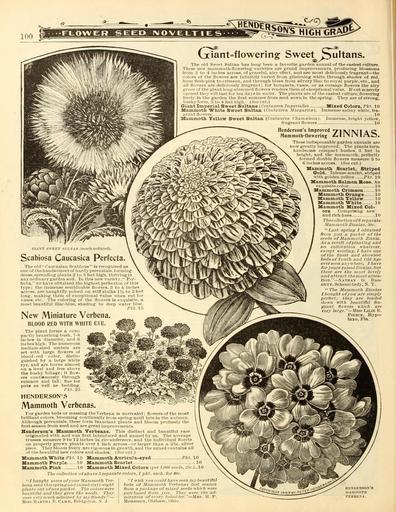 | Keywords: Everything for the garden (16666793280).jpg 100 <br> I <br> FLOWER SEED <br> m <br> lii <br> – jj - '- <br> - <br> i <br> t/l <br> r <br> \ <br> - <br> '»- <br> GIANT SWEET SULTAN miicli reduced <br> Scabiosa Caucasica Perfecta <br> Tlio old f'aucasian Srabious Is recoRtilzed as <br> one of thehandsoniestor hardyperennialH forming <br> dense Hpreading plants 2 to 3 feet high thriving in <br> any ordinary garden soil In this new variety Per- <br> fecta we have obtained the liighest perfection of this <br> type; the immense seniidouble flowers 3 to 4 inches <br> across are haughtily poised on stiff stalks – to 2 feet <br> long making them of e xceptional value wlien cut t jr <br> vases etc The coloring of the flowers is exquisite a <br> most beautiful lilac-blue shading to deep water blue <br> Pkt 15 <br> New Miniature Verbena <br> BLOOD RED WITH WHITE EVE <br> The plant forms a com- <br> pactly branching bush 7-8 <br> inches in diameter and 6 <br> inches high The numerous -_« - <br> medium-sized umbels are s »L '»- 3 <br> set with large flowers of <br> blood -red color distin- <br> guished by a large white <br> eye and are borne almost <br> on a level and free above <br> the bushy foliage; it flow- <br> ers contiBuously through <br> summer and fall ; fine for <br> potB as well as bedding _ <br> J'kt 25 /tI <br> HENDERSON'S <br> Mammoth Verbenas <br> For garden beds or massing the Verbena is unrivaled; flowers of the most <br> brilliant colors blooming continually from spring until late in the autumn <br> Although perennials these form luxuriant plants and bloom profusely the <br> first season from seed and are great improvements <br> Henderson's Mammoth Verbenas This distinct and beautiful race <br> originated with and was first Introduced and named by us The average <br> trusses measure 9 to 12 inches in circumference and the individual florets <br> on properly grown plants over 1 inch across ” or larger than a 25c silver <br> piece They bloom freely are vigorous in growth and the mixed contains all <br> of the beautiful new colors and shades SVe i nt <br> Mammoth White Pif 10 Mammoth AuricuJ a-eyed Pit 10 <br> Mammoth Pttrple 10 Mam moth Scarlet ¢ 10 <br> Mammoth Fink 10 Mammoth Mixed Colors per IflOO seeils 25c 10 <br> The collection at above 5 separate colors 1 pkt each for 40c <br> I nish jou could have seen my bea utifiil <br> beds of Mammoth Verlienas last season <br> from a package of mixed seeds which were <br> purchased from you They were the ad- <br> miration of every iiehohler ” Mrs H P <br> Morrison Oldham Ohio <br> iant flowering Sweet i; ultans <br> The old Sweet Sultan has long been a favorite garden annual of the easiest culture <br> These new manunoth-llnwering varieties are grand improvements producing blossoms <br> from ' i to 4 inclies across of graceful airy effect and are most dellciously fragrant ” the <br> colors of the flowers are infinitely varied from glistening white through shades of red <br> from flesh-pink to crimson and through blues from silvery liinc to royal purple etc and <br> all flowers are deliciously fragrant; for bouquets vases or as corsage flowers the airy <br> grace of the giant long-stemmed flowers renders them of exceptional value If cut scarcely <br> opened they w ill last for ten days in water The plants are of the easiest culture flowering <br> freely in the garden the first summer from seed sown in the spring They are of strong <br> liUKhy form 3 to 4 feet high See cut <br> Giant Imperial Sweet Stiltans Centanrea Imperialis Mixed Colors Pkt 10 <br> Mammoth White Sweet Sultan Centaurea Margarita Immense satiny white fra- <br> -r;uit flowers 10 <br> Mammoth Yellow Sweet Sultan Centaurea ChamiPleou Immense bright yellow <br> fragrant flowers 10 <br> Henderson's Improved 7 IN MI A C <br> Mammoth-flowering /-«ll 1 I A O <br> These lndisi ensable garden annuals are <br> ow greatly Improved The plants form <br> handsome compax't bushes 3 feet in <br> height and the mammoth perfectly <br> formed double flowers measure 5 to <br> 6 Inches across See cut <br> Mammoth Scarlet Striped <br> Gold Intense scarlet striped <br> with golilen yellow Pkt 10 <br> Mammoth Salmon Bose An <br> ex nisi to color 10 <br> Mammoth Crimson 10 <br> Mammoth Oraug'e 10 <br> Mammoth Yellow 10 <br> Mammoth White 10 <br> Mammoth Mixed Col- <br> ors Com prising new <br> and rich hues 10 <br> Thecnllection oftl separate <br> Mammoth Zinnias Mc <br> Last spring T obtained <br> f orn you a packet of the <br> seeds of Mammoth Zinnia <br> As a result ofplauting and <br> no cultivation whatever <br> except weeding I have one <br> of the finest and showiest <br> beds of Youth and Old Age <br> ever seen anywhere J have <br> for years raised Zinnias but <br> these are the most lovely <br> and attract the most atten- <br> tion ” Nathan G Dag- <br> gett Schenectady N Y <br> The Mammoth Zinnias <br> I bought of you are simply <br> perfect; they are loaded <br> down with beautiful fla- <br> grant flowers which are <br> very large ” Miss Lilie E <br> Pierce Hypo- <br> luxo Fla <br> ; <br> <br> X <br> sc <br> C S l <br> /I <br> s <br> fei; <br> U <br> Jr <br> <br> iN <br> I bought some of your Mammoth A'er- <br> bena seed thisspringantl raised sixly-eiglit <br> plants out of one packet The colors were <br> beautiful and they grew like weeds They <br> were very much admired by my fi'iends ” <br> Miss Martha R Camm Bridgeton N 1 <br> £0P <br> tf/f <br> llSiiJ IS9 7BV pi <br> reP; <br> niCNUERBON B <br> M A M \l OTH <br> VERBENA 42383189 133997 66553 Page 100 Text http //www biodiversitylibrary org/page/42383189 1902 10 5962/bhl title 66553 Henry G Gilbert Nursery and Seed Trade Catalog Collection ; Peter Henderson Co NameFound Caucasica NameConfirmed Caucasica EOLID 9101655 NameBankID 4105838 NameFound Centaurea NameConfirmed Centaurea L EOLID 59386 NameFound Imperialis NameConfirmed Imperialis NameBankID 4853926 NameFound Scabiosa NameConfirmed Scabiosa 'Si