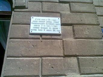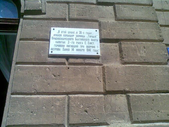 | Keywords: Evpatoria-016.jpg  en Evpatoria-016 Памятная доска в честь ка аима Е Ефета  адпись В этой школе в 30-х годах учился команди эсминца Го дый К аснознаменного Балтийского флота капитан 3-го  анга Е Ефет ге ойски погибший п и обо оне п-ост ова Ханко 14 нояб я 1941 года Own Olaffpomona Eupatoria |