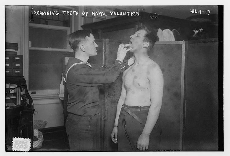 | Keywords: Examining teeth of naval volunteer (LOC) (17099040475).jpg Bain News Service publisher Examining teeth of naval volunteer between ca 1915 and ca 1920 1 negative glass ; 5 x 7 in or smaller Notes Title from unverified data provided by the Bain News Service on the negatives or caption cards Forms part of George Grantham Bain Collection Library of Congress Format Glass negatives Rights Info No known restrictions on publication Repository Library of Congress Prints and Photographs Division Washington D C 20540 USA http //hdl loc gov/loc pnp/pp print hdl loc gov/loc pnp/pp print General information about the Bain Collection is available at http //hdl loc gov/loc pnp/pp ggbain hdl loc gov/loc pnp/pp ggbain Higher resolution image is available Persistent URL http //hdl loc gov/loc pnp/ggbain 24059 hdl loc gov/loc pnp/ggbain 24059 Call Number LC-B2- 4164-17 https //www flickr com/photos/library_of_congress/17099040475/ Examining teeth of naval volunteer LOC LOC-image ggbain 24059 2011-01-01 00 00 https //www flickr com/people/8623220 N02 The Library of Congress http //www loc gov/rr/print/195_copr html noknown The Library of Congress Flickr Commons PD-Bain The Library of Congress https //flickr com/photos/8623220 N02/17099040475 2016-09-08 08 33 04 pd Uncategorized 2016 December 20 |
