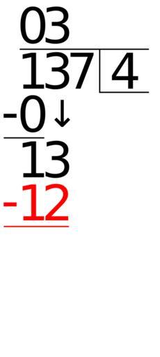 Keywords: Example 137 divided by 4 step 7.svg en Example 137 divided by 4 step 7 2012-06-20 own Averater cc-zero SVG calculus examples Division mathematics Uploaded with UploadWizard SVG files by Averater