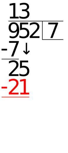 Keywords: Example 952 divided by 7 step 7.svg en Example 952 divided by 7 step 7 2012-06-19 own Averater cc-zero SVG calculus examples Division mathematics Uploaded with UploadWizard SVG files by Averater