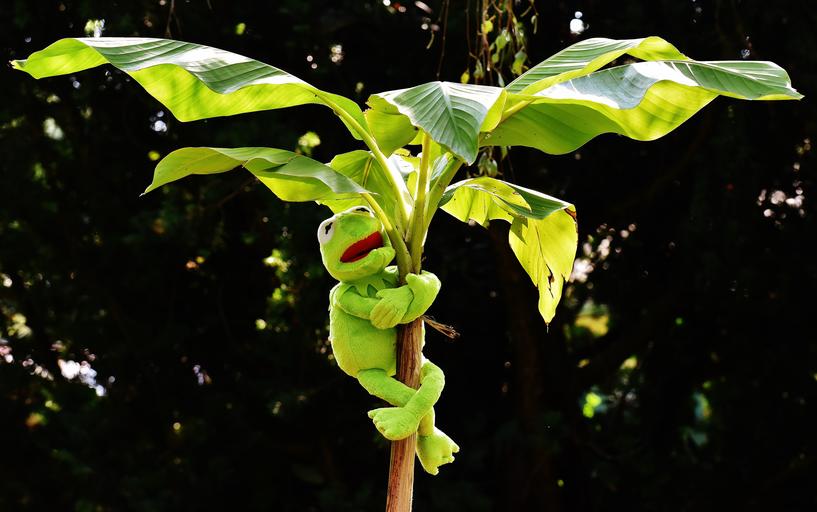 Keywords: exasperate kermit frog kermit frog green toys soft toy stuffed animal funny cute banana plant banana leaves