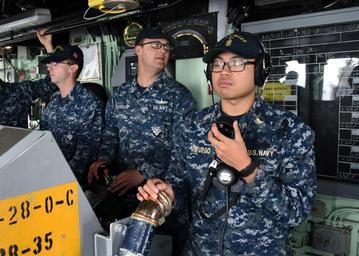 Keywords: Exercise Foal Eagle 150405-N-AD372-211.jpg en 150405-N-AD372-211 WATERS SOUTH OF THE KOREAN PENINSULA April 5 2015 Logistics Specialist 2nd Class Nicholas White and Mineman 3rd Class Jeromy Henderson operate the ships control console while Ens Allen Sinfuego mans the sound powered phone aboard the mine countermeasure ship USS Chief MCM 14 during the ships sea and anchor detail Chief is currently participating in Exercise Foal Eagle 2015 a series of annual training events that are defense-oriented and designed to increase readiness and maintain stability on the Korean Peninsula while strengthening the Republic of Korea - U S alliance and promoting regional peace and stability in the Indo-Asia-Pacific region U S Navy photo by Mass Communication Specialist 1st Class Abraham Essenmacher/Released 2015-04-05 Petty Officer 2nd Class Abraham Essenmacher https //www dvidshub net/image/1863538 150405-N-AD372-211 2015-04-09 00 00 USS CHIEF WATERS SOUTH OF THE REPUBLIC OF KOREA AT SEA PD-USGov-Military-Navy USS Chief MCM-14 Images from DoD uploaded by Fæ Foal Eagle 2015 Navy Working Uniform in 2015 |