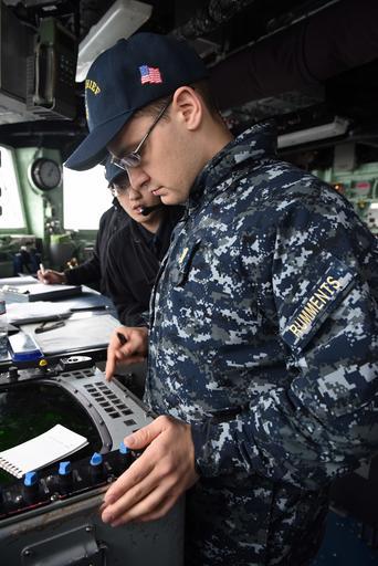 Keywords: Exercise Foal Eagle 150406-N-AD372-100.jpg en 150406-N-AD372-100 WATERS SOUTH OF THE KOREAN PENINSULA April 6 2015 Ensign Andrew Rumments weapons officer aboard the mine countermeasure ship USS Chief MCM 14 tracks a contact with the SPS-55 radar on the bridge Chief is participating in Exercise Foal Eagle 2015 a series of annual training events that are defense-oriented and designed to increase readiness and maintain stability on the Korean Peninsula while strengthening the Republic of Korea-U S alliance and promoting regional peace and stability in the Indo-Asia-Pacific region U S Navy photo by Mass Communication Specialist 1st Class Abraham Essenmacher/Released 2015-04-06 Petty Officer 2nd Class Abraham Essenmacher https //www dvidshub net/image/1862206 150406-N-AD372-100 2015-04-08 03 04 USS CHIEF WATERS SOUTH OF THE KOREAN PENINSULA AT SEA PD-USGov-Military-Navy USS Chief MCM-14 Images from DoD uploaded by Fæ Foal Eagle 2015 |