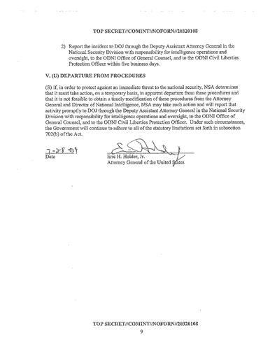 | Keywords: Exhibit-a-p9-normal.jpg EXHIBIT A - PROCEDURES USED BY THE NATIONAL SECURITY AGENCY NON-UNITED STATES PERSONS BELIEVED TO BE LOCATED OUTSIDE THE UNITED STATES TO ACQUIRE FOREIGN INTELLIGENCE INFORMATION PURSUANT TO SECTION 792 OF THE FOREIGN INTELLIGENCE SURVEILLANCE ACT OF 1978 AS AMENDED http //www guardian co uk/world/interactive/2013/jun/20/exhibit-a-procedures-nsa-document 2007-01-08 Eric H Holder Jr PD-EdictGov PD-USGov EXHIBIT A | ||||