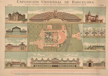 | Keywords: Expo Barcelona 1888.jpg es Exposición Universal de Barcelona 1888 plano general y vistas de las principales construcciones http //cartotecadigital icc cat/cdm/singleitem/collection/catalunya/id/3473 author 1888 1888 Barcelona Universal Exposition PD-old |
