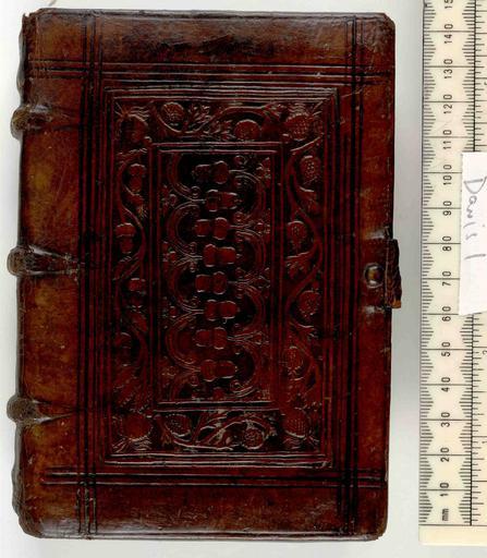 Keywords: Exposition in Psalterium - Upper cover (Davis1).jpg Style Panel design; Caption Upper cover; Colour Brown; Edge Unspecified exhibition history Decorative Technique Tooled in blind Panel stamp in blind; Cover Material Calf Wooden boards Parchment manuscript waste used as spine strengthener 3 leather thong sewing supports laced horizontally into boards No endbands Remnants of 1 pair of clasps Tooled in blind with different acorn panels on each cover object history Text nd; Paris; Unspecified object type Cc-zero place of creation Binding England place of discovery See M M Foot The Henry Davis Gift vol II London 1983 See J B Oldham Blind Panels of English Binders Cambridge 1958 AC9 AC10 British Library image http //www bl uk/catalogues/bookbindings/LargeImage aspx RecordId 020-000003066 ImageId ImageId 41138 Copyright BL Exposition in Psalterium Uploaded with GWToolset Exposition in Psalterium - Upper cover Davis1 http //www webarchive org uk/bldatasets/bindings/5636_4 jpg Bookbinding 16th-century bookbinding British Library Bookbindings |