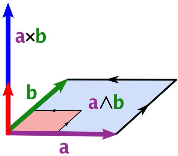 | Keywords: Exterior calc cross product.png en wikipedia 2009 April 16 This image was made by the posting Wikipedia author and is freely distributed under GFDL Exterior calc cross product svg The cross product viewed in terms of the exterior product and Hodge dual In red are the unit normal vector and unit parallel bivector The cross product as the dual of the bivector has the same magnitude relative to the unit normal vector as the bivector has relative to the unit bivector -- thus the magnitude of the cross product is the area of parallelogram formed by the bivector SVG source code SVG is rendered poorly by the current renderer especially text and arrows <pre> <nowiki> < xml version 1 0 encoding UTF-8 standalone no > <svg xmlns dc http //purl org/dc/elements/1 1/ xmlns cc http //web resource org/cc/ xmlns rdf http //www w3 org/1999/02/22-rdf-syntax-ns xmlns svg http //www w3 org/2000/svg xmlns http //www w3 org/2000/svg xmlns sodipodi http //inkscape sourceforge net/DTD/sodipodi-0 dtd xmlns inkscape http //www inkscape org/namespaces/inkscape width 112 96 height 99 050003 id svg2 sodipodi version 0 32 inkscape version 0 43 sodipodi docbase /home/jedidiah/Desktop sodipodi docname exterior_calc_cross_product svg version 1 0 inkscape export-filename /home/jedidiah/Desktop/Exterior_calc_cross_product png inkscape export-xdpi 900 44763 inkscape export-ydpi 900 44763 > <defs id defs4 > <marker inkscape stockid Arrow1Lstart orient auto refY 0 0 refX 0 0 id Arrow1Lstart style overflow visible > <path id path3396 d M 0 0 0 0 L 5 0 -5 0 L -12 5 0 0 L 5 0 5 0 L 0 0 0 0 z style fill-rule evenodd;stroke 000000;stroke-width 1 0pt;marker-start none transform scale 0 8 /> </marker> <marker inkscape stockid Arrow1Mstart orient auto refY 0 0 refX 0 0 id Arrow1Mstart style overflow visible > <path id path3390 d M 0 0 0 0 L 5 0 -5 0 L -12 5 0 0 L 5 0 5 0 L 0 0 0 0 z style fill-rule evenodd;stroke 000000;stroke-width 1 0pt;marker-start none transform scale 0 4 /> </marker> <marker inkscape stockid Arrow1Mend orient auto refY 0 0 refX 0 0 id Arrow1Mend style overflow visible; > <path id path3387 d M 0 0 0 0 L 5 0 -5 0 L -12 5 0 0 L 5 0 5 0 L 0 0 0 0 z style fill-rule evenodd;stroke 000000;stroke-width 1 0pt;marker-start none; transform scale 0 4 rotate 180 /> </marker> <marker inkscape stockid Arrow2Mstart orient auto refY 0 refX 0 id Arrow2Mstart style overflow visible > <path id path3239 style font-size 12px;fill-rule evenodd;stroke-width 0 625;stroke-linejoin round d M 8 7185878 4 0337352 L -2 2072895 0 016013256 L 8 7185884 -4 0017078 C 6 97309 -1 6296469 6 9831476 1 6157441 8 7185878 4 0337352 z transform scale 0 6 0 6 /> </marker> <marker inkscape stockid Arrow2Send orient auto refY 0 refX 0 id Arrow2Send style overflow visible > <path id path4181 style font-size 12px;fill-rule evenodd;stroke-width 0 625;stroke-linejoin round d M 8 7185878 4 0337352 L -2 2072895 0 016013256 L 8 7185884 -4 0017078 C 6 97309 -1 6296469 6 9831476 1 6157441 8 7185878 4 0337352 z transform matrix -0 3 0 0 -0 3 0 69 0 /> </marker> <marker style fill 952c95;overflow visible id ArrowViolet refX 0 refY 0 orient auto inkscape stockid ArrowViolet > <path transform matrix -0 3 0 0 -0 3 0 69 0 d M 8 7185878 4 0337352 L -2 2072895 0 016013256 L 8 7185884 -4 0017078 C 6 97309 -1 6296469 6 9831476 1 6157441 8 7185878 4 0337352 z style font-size 12px;fill-rule evenodd;stroke-width 0 625;stroke-linejoin round id path2210 /> </marker> <marker inkscape stockid ArrowRed orient auto refY 0 refX 0 id ArrowRed style fill ff0000;overflow visible > <path id path2294 style font-size 12px;fill-rule evenodd;stroke-width 0 625;stroke-linejoin round d M 8 7185878 4 0337352 L -2 2072895 0 016013256 L 8 7185884 -4 0017078 C 6 97309 -1 6296469 6 9831476 1 6157441 8 7185878 4 0337352 z transform matrix -0 3 0 0 -0 3 0 69 0 /> </marker> <marker inkscape stockid ArrowBlue orient auto refY 0 refX 0 id ArrowBlue style fill 0000ff;overflow visible > <path id path2227 style font-size 12px;fill-rule evenodd;stroke-width 0 625;stroke-linejoin round d M 8 7185878 4 0337352 L -2 2072895 0 016013256 L 8 7185884 -4 0017078 C 6 97309 -1 6296469 6 9831476 1 6157441 8 7185878 4 0337352 z transform matrix -0 3 0 0 -0 3 0 69 0 /> </marker> <marker inkscape stockid ArrowGreen orient auto refY 0 refX 0 id ArrowGreen style fill 138813;overflow visible > <path id path2214 style font-size 12px;fill-rule evenodd;stroke-width 0 625;stroke-linejoin round d M 8 7185878 4 0337352 L -2 2072895 0 016013256 L 8 7185884 -4 0017078 C 6 97309 -1 6296469 6 9831476 1 6157441 8 7185878 4 0337352 z transform matrix -0 3 0 0 -0 3 0 69 0 /> </marker> <marker inkscape stockid Arrow2Mend orient auto refY 0 refX 0 id Arrow2Mend style overflow visible > <path id path4175 style font-size 12px;fill-rule evenodd;stroke-width 0 625;stroke-linejoin round d M 8 7185878 4 0337352 L -2 2072895 0 016013256 L 8 7185884 -4 0017078 C 6 97309 -1 6296469 6 9831476 1 6157441 8 7185878 4 0337352 z transform scale -0 6 -0 6 /> </marker> <marker style fill 138813;overflow visible id Arrow2Dark_green refX 0 refY 0 orient auto inkscape stockid Arrow2Dark_green > <path transform scale -0 6 -0 6 d M 8 7185878 4 0337352 L -2 2072895 0 016013256 L 8 7185884 -4 0017078 C 6 97309 -1 6296469 6 9831476 1 6157441 8 7185878 4 0337352 z style font-size 12px;fill-rule evenodd;stroke-width 0 625;stroke-linejoin round id path4417 /> </marker> <marker style fill e70717;overflow visible id Arrow2Red refX 0 refY 0 orient auto inkscape stockid Arrow2Red > <path transform scale -0 6 -0 6 d M 8 7185878 4 0337352 L -2 2072895 0 016013256 L 8 7185884 -4 0017078 C 6 97309 -1 6296469 6 9831476 1 6157441 8 7185878 4 0337352 z style font-size 12px;fill-rule evenodd;stroke-width 0 625;stroke-linejoin round id path4409 /> </marker> <marker style fill 0000ff;overflow visible id Arrow2Blue refX 0 refY 0 orient auto inkscape stockid Arrow2Blue > <path transform scale -0 6 -0 6 d M 8 7185878 4 0337352 L -2 2072895 0 016013256 L 8 7185884 -4 0017