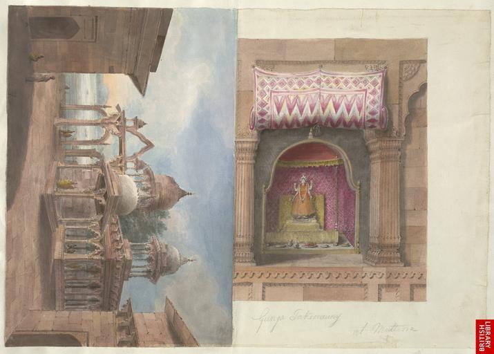 Keywords: Exterior and interior views of the Siva temple on the Ganga ghat at Mathura.jpg The Visrant ghaut on the river Jumna at Mathura a watercolor by Seeta Ram c 1814-15 BL ; also Aurangzeb's red sandstone mosque built in 1670 Sita Ram 1815b also Exterior and interior views of the Siva temple on the Ganga ghat at Mathura Sita Ram 1815c ; also View of Mathura with 'Abd al-Nabi's mosque in the centre Sita Ram 1815d http //www columbia edu/itc/mealac/pritchett/00routesdata/1400_1499/krishnabhakti/vrindavan/vrindavan html 1814-15 Seeta Ram PD-Old Krishna |