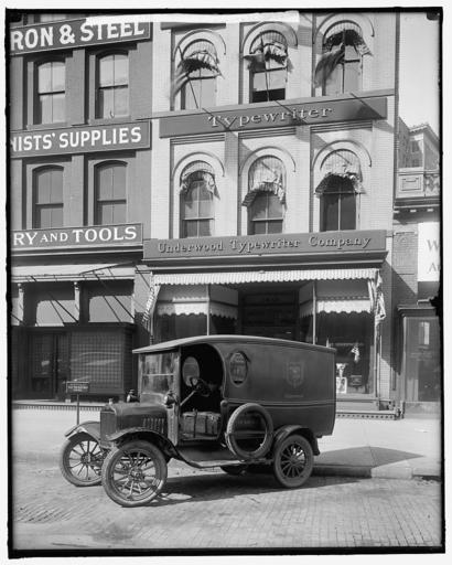 | Keywords: Exterior Underwood Typewriter Company.jpg en Exterior of the Underwood Typewriter Company with vehicle outside Library of Congress http //www loc gov/pictures/collection/hec/item/hec2009007387/ Information http //lcweb2 loc gov/service/pnp/hec/20600/20689v jpg Direct Harris Ewing 1905-45 PD-Harris-Ewing Underwood Typewriter Company Ford Model T 1915-1916 Ford Model T Pickup Delivery | ||||