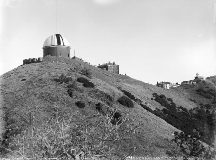 | Keywords: Exterior view of Lick Observatory on Mount Hamilton, California, ca.1904-1909 (CHS-3939).jpg en <br> Exterior view of Lick Observatory on Mount Hamilton California ca 1904-1909 Photograph of an exterior view of Lick Observatory on Mount Hamilton California ca 1900 The great dome is open and turned toward the camera at left The astronomers' residence is located along the ridge further to the right Several other smaller buildings and a windmill are located even further to the right Low vegetation dots the sloping landscape Call number CHS-3939 Legacy record ID chs-m10553; USC-0-1-1-10701 Photographer James George Wharton Filename CHS-3939 Coverage date circa 1904/1909 Part of collection California Historical Society Collection 1860-1960 Type images Part of subcollection Title Insurance and Trust and C C Pierce Photography Collection 1860-1960 Repository name USC Libraries Special Collections Accession number 3939 Microfiche number 1-100-6 Archival file chs_Volume91/CHS-3939 tiff Repository address Doheny Memorial Library Los Angeles CA 90089-0189 Geographic subject country USA Format aacr2 2 photographs glass photonegative photoprint b w ; 17 x 22 cm Rights Digitally reproduced by the USC Digital Library; From the California Historical Society Collection at the University of Southern California Subject adlf research facilities Project USC Repository email specol usc edu Contributing entity California Historical Society Date created circa 1904/1909 Publisher of the digital version University of Southern California Libraries Format aat photographic prints; photographs Geographic subject state California Subject file heading Observatories -- Lick Observatory Format glass plate negatives Geographic subject mountains Mount Hamilton Access conditions Send requests to address or e-mail given Phone 213 821-2366; fax 213 740-2343 Geographic subject county Santa Clara Subject lcsh Observatories Subject Lick Observatory circa 1904 /1909 date created James George Wharton http //digitallibrary usc edu/cdm/ref/collection/p15799coll65/id/13700 PD-old-70-1923 Images from USC Digital Library uploaded by Fæ California Historical Society Collection 1860-1960 Glass plate negatives Photographs by George Wharton James Lick Observatory |