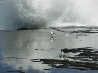Keywords: ExtremeFishing.jpg Kelp Gulls eating fish on the edge of a rock shelf with the sea breaking high above them all of that reflected in the still pool of water on the shelf one seagull running from the exploding water another calmly pecking at a fish head Muriwai New Zealand Source Own work see Paul Moss wp gallery Creation Date 20th April 2006 11 44am Author Paul Moss see Paul Moss wp user page Permission Own work all rights released Public Domain see tag Other versions A much smaller file size is used on the wikipedia site Muriwai New Zealand 2006-04-20 own assumed Mozasaur~commonswiki Larus dominicanus Laridae eating 1280x960 |